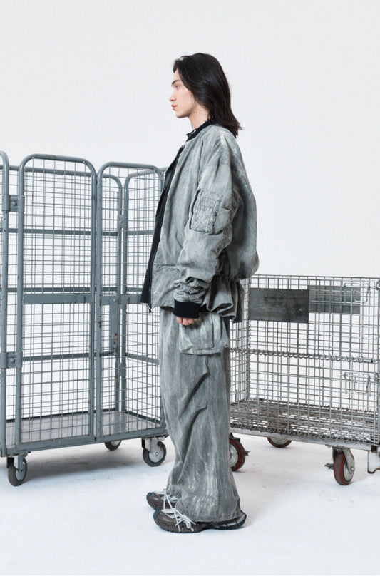 Sold outShirring tie dye denim jumper gray