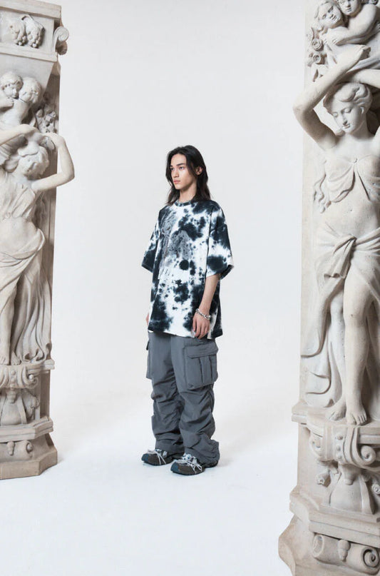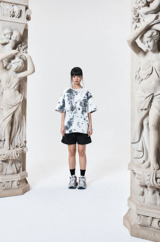 Destroyed gradation bleached short sleeve black