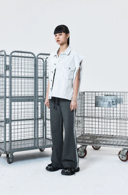 Destroyed vintage double denim pants