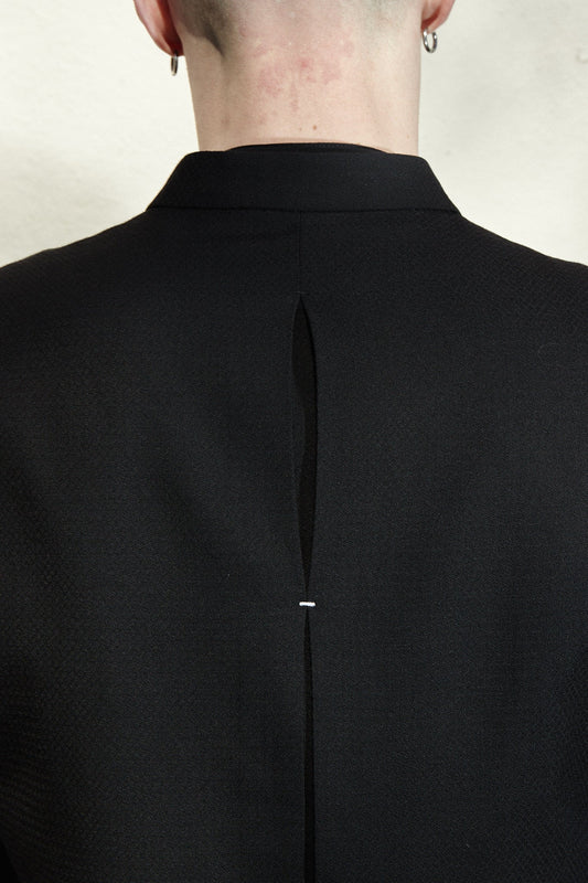 Dyed Raw-Edged Hoodie With Linen Muffler Black