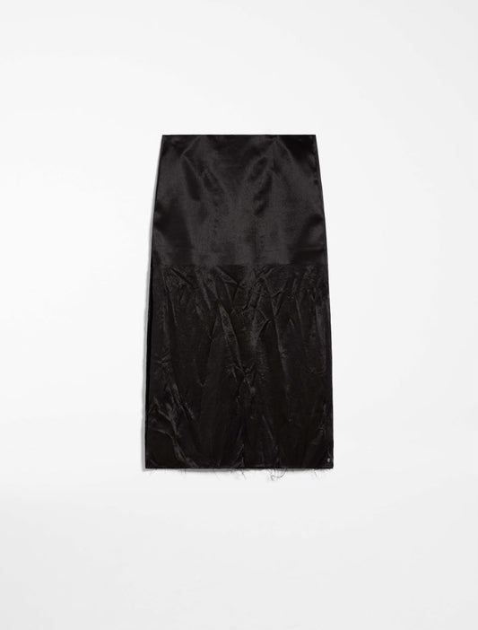 Crinkle-look calf-length skirt