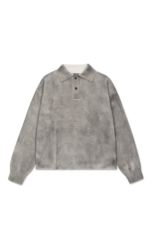 Spray Damaged Polo Knit Grey