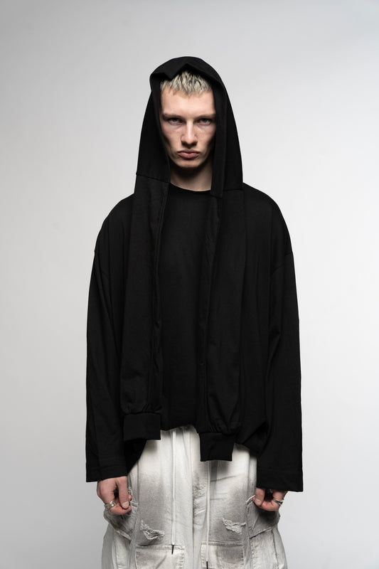 Dyed Raw-Edged Hoodie With Linen Muffler Black