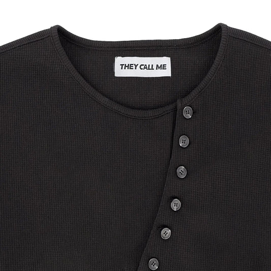 (T) Crossline Henley Neck Long Sleeve Black
