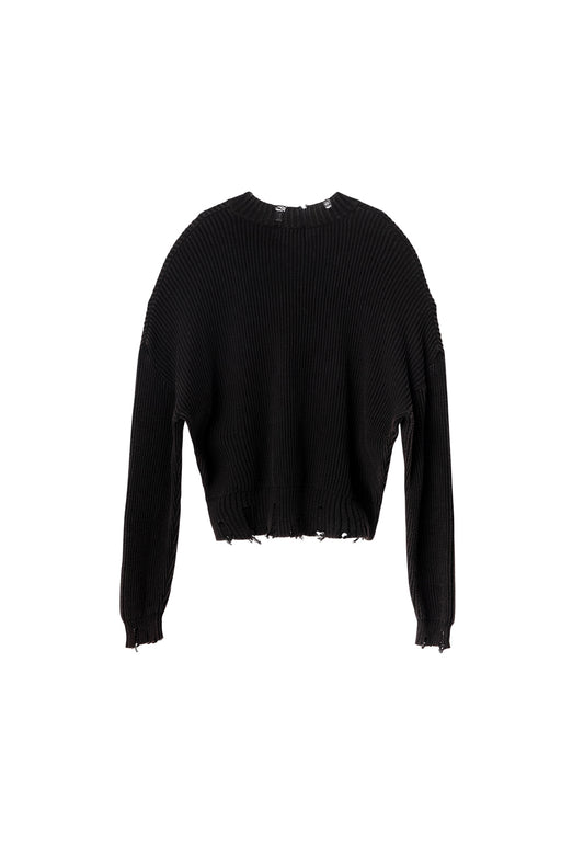 V-neck distressed knit black