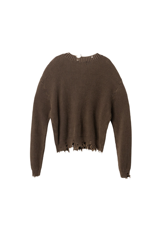 V-neck distressed knit brown