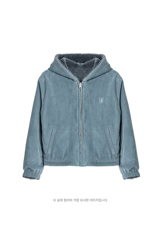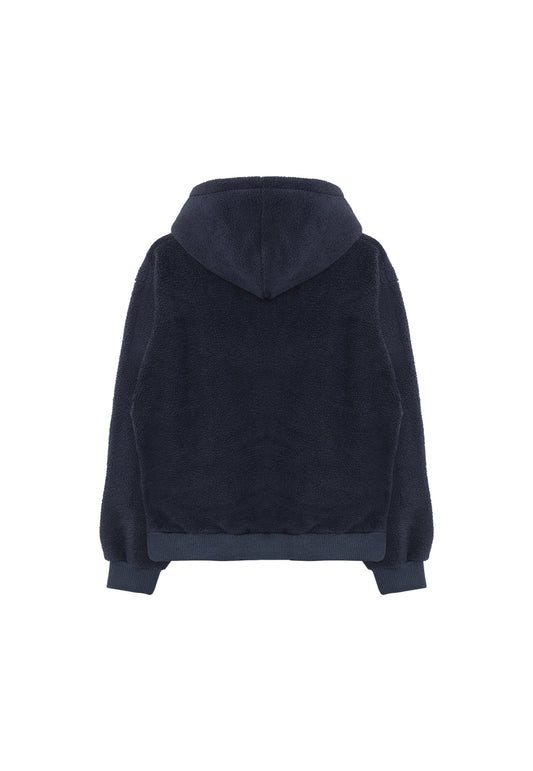 Reversible fleece crop hood zip-up charcoal + blue