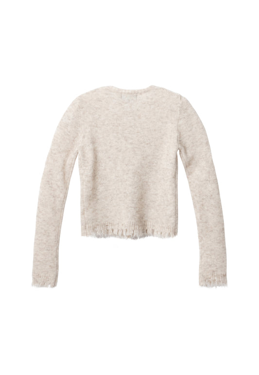 Distressed knit round cardigan oatmeal