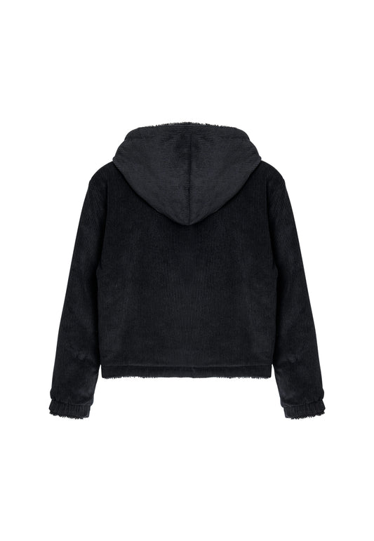 Reversible fleece crop hood zip-up black