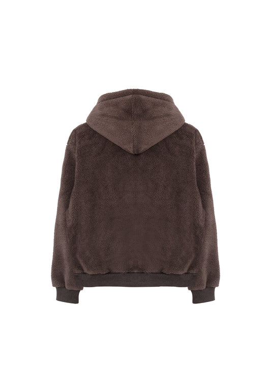 Signature fleece hood zip-up dark brown