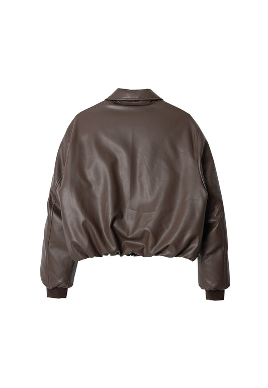 Leather padding bomber jacket brown
