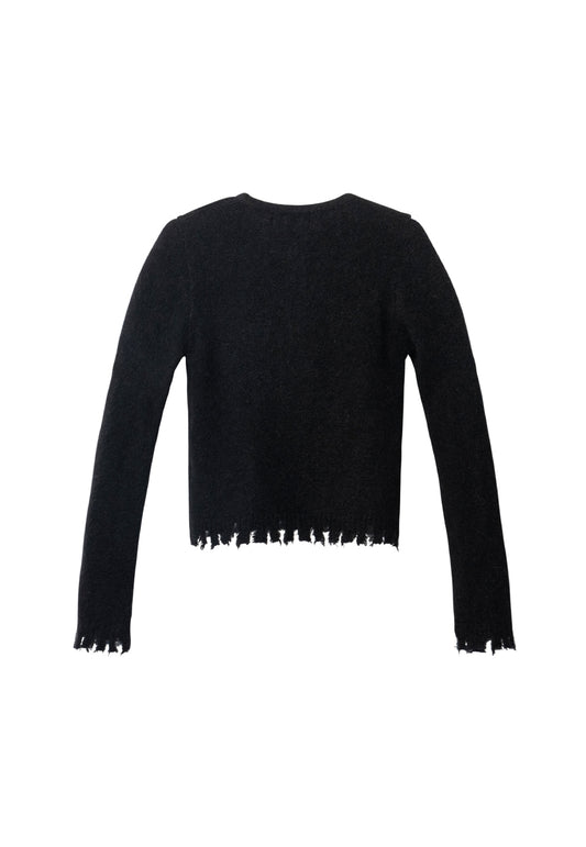 Distressed knit round cardigan black