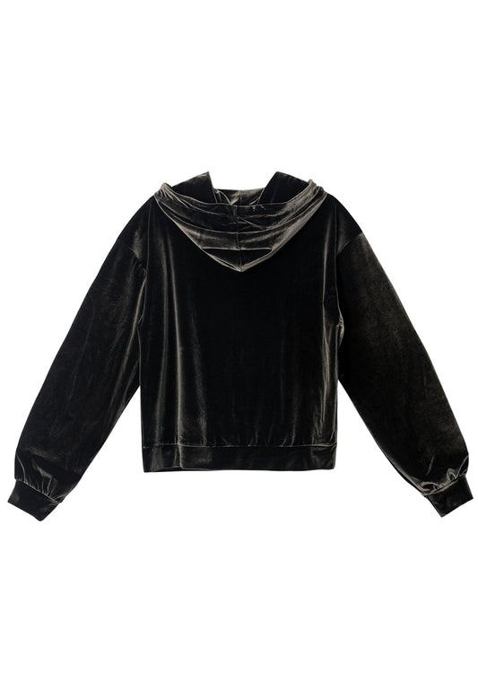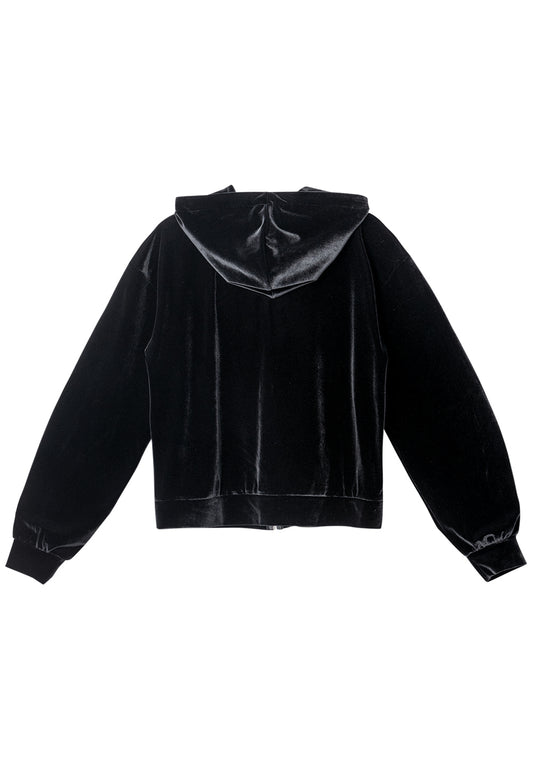Signature velour slim hood zip-up black