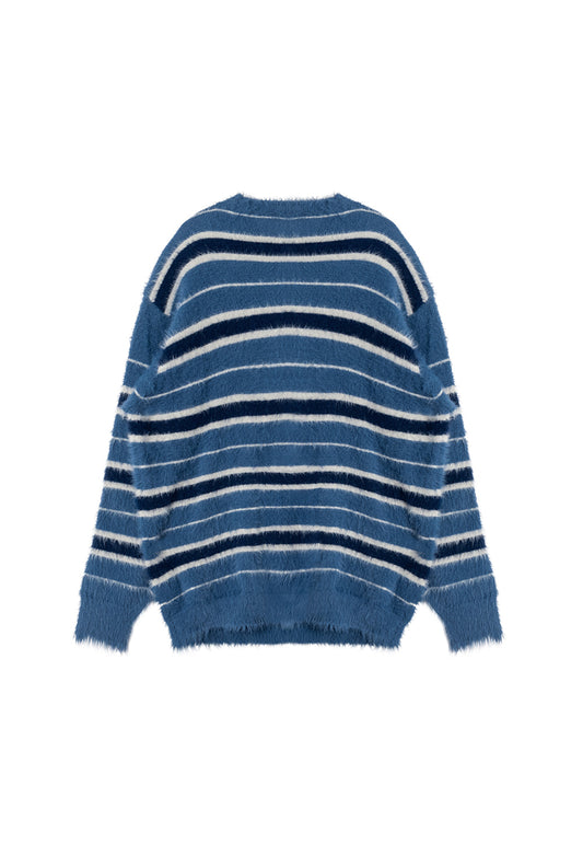 Stripe brushed cardigan blue