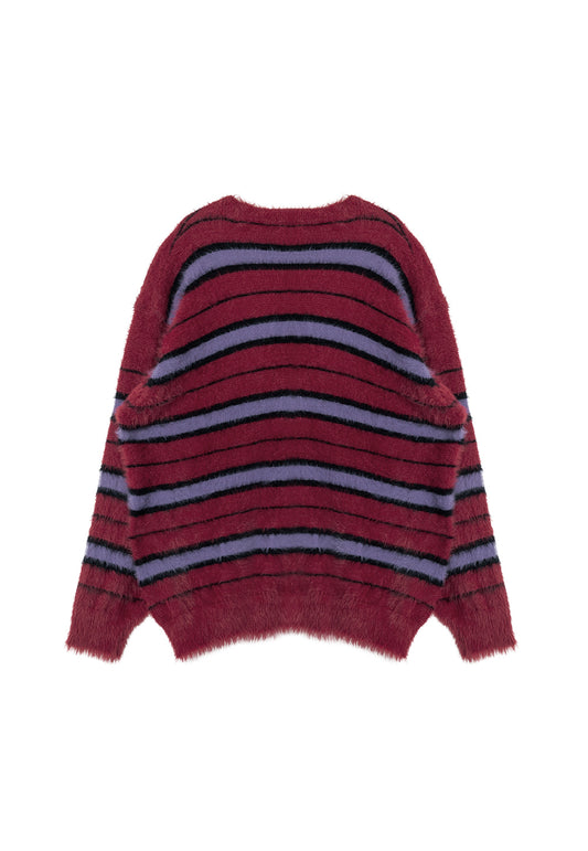 Stripe brushed cardigan red