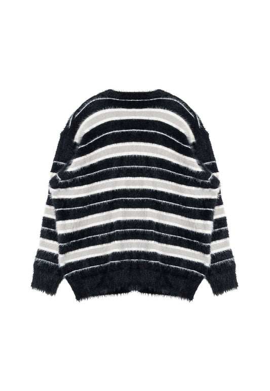 Stripe brushed cardigan black