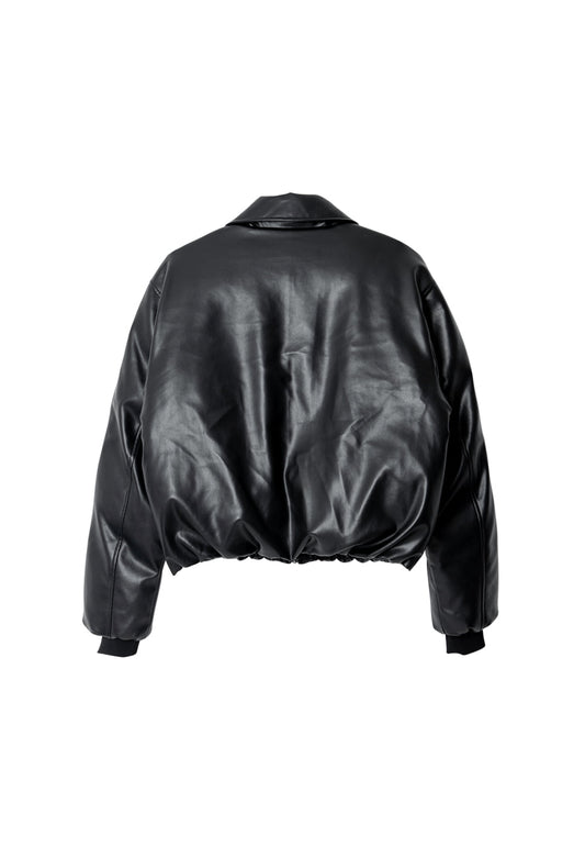 Leather padding bomber jacket black