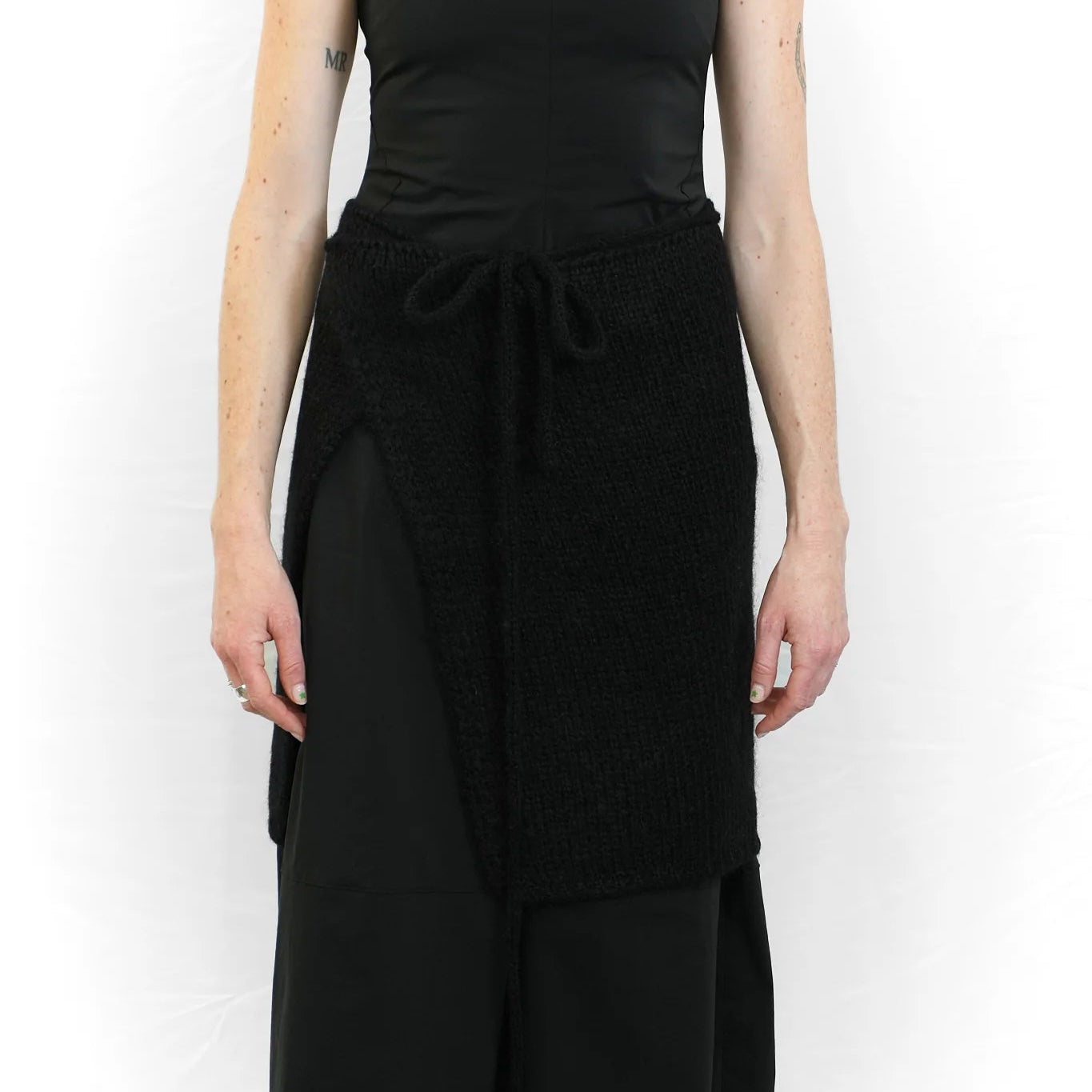 The KNITTED SQUARE SCARF WITH TIE DETAIL is a versatile accessory that blends cozy texture with modern styling.