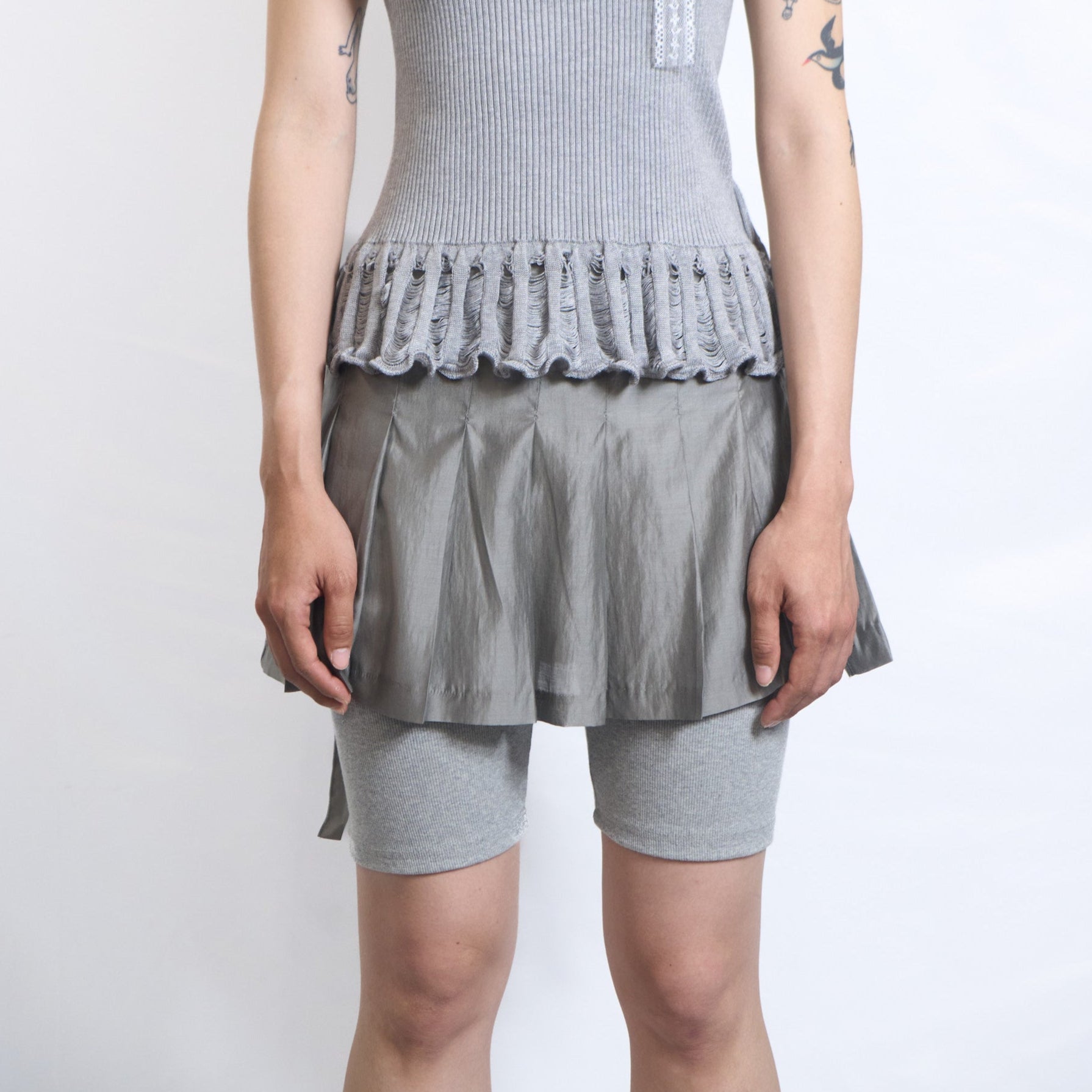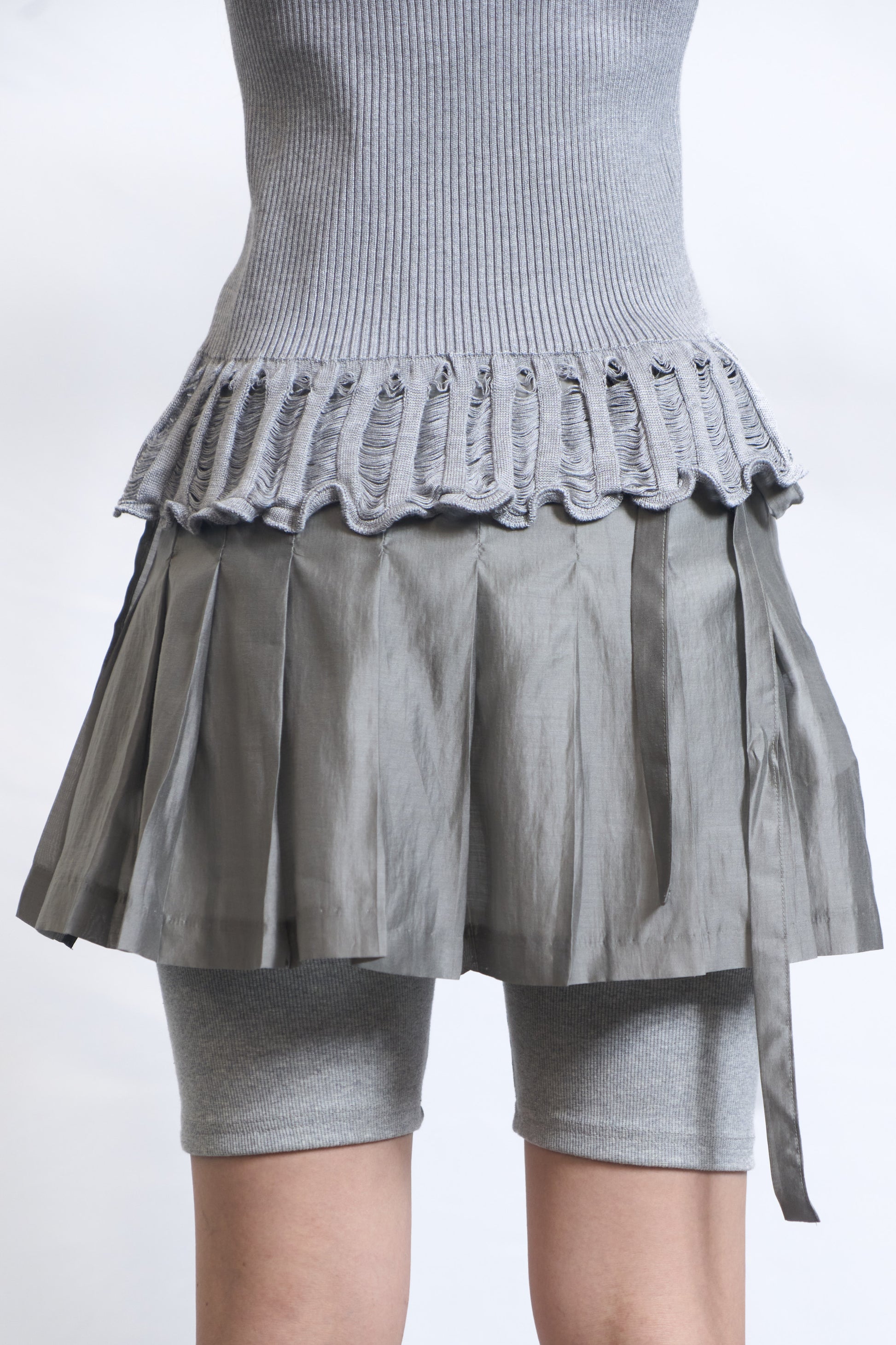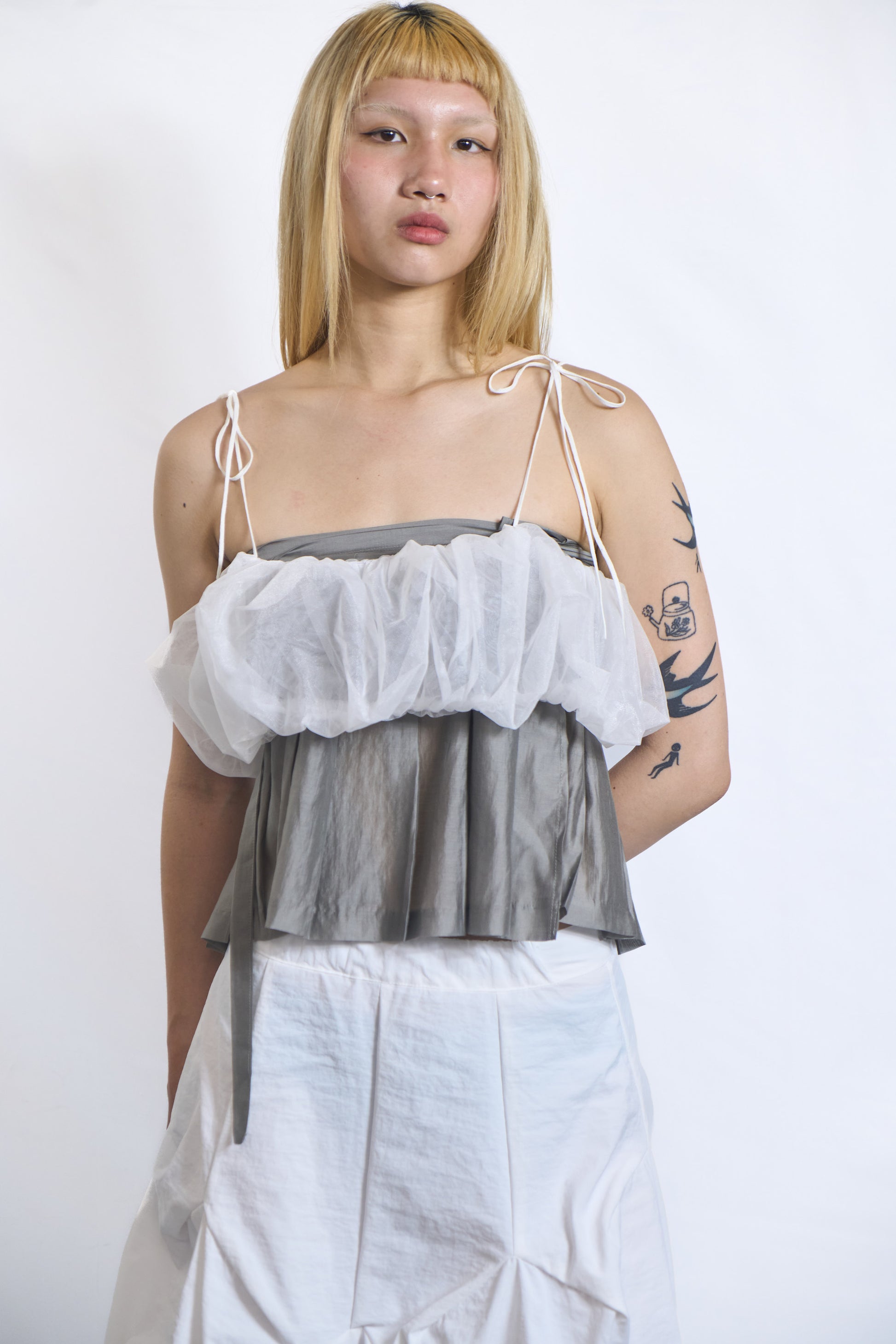 One piece, two possibilities. This airy pleated wrap piece is crafted from a sheer, lightweight fabric with a subtle shine. Designed to be worn as a mini skirt or styled as a bandeau-style top, it wraps and ties with ease — creating movement, texture, and unexpected layering options.