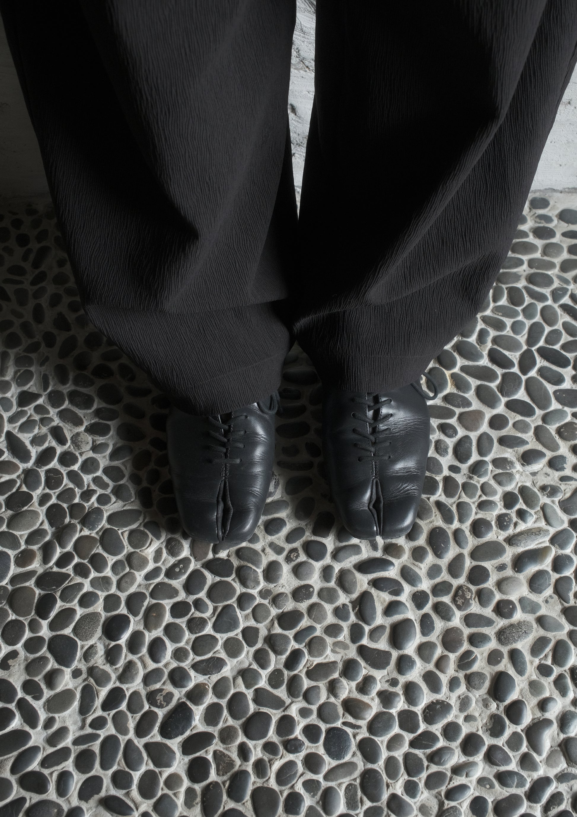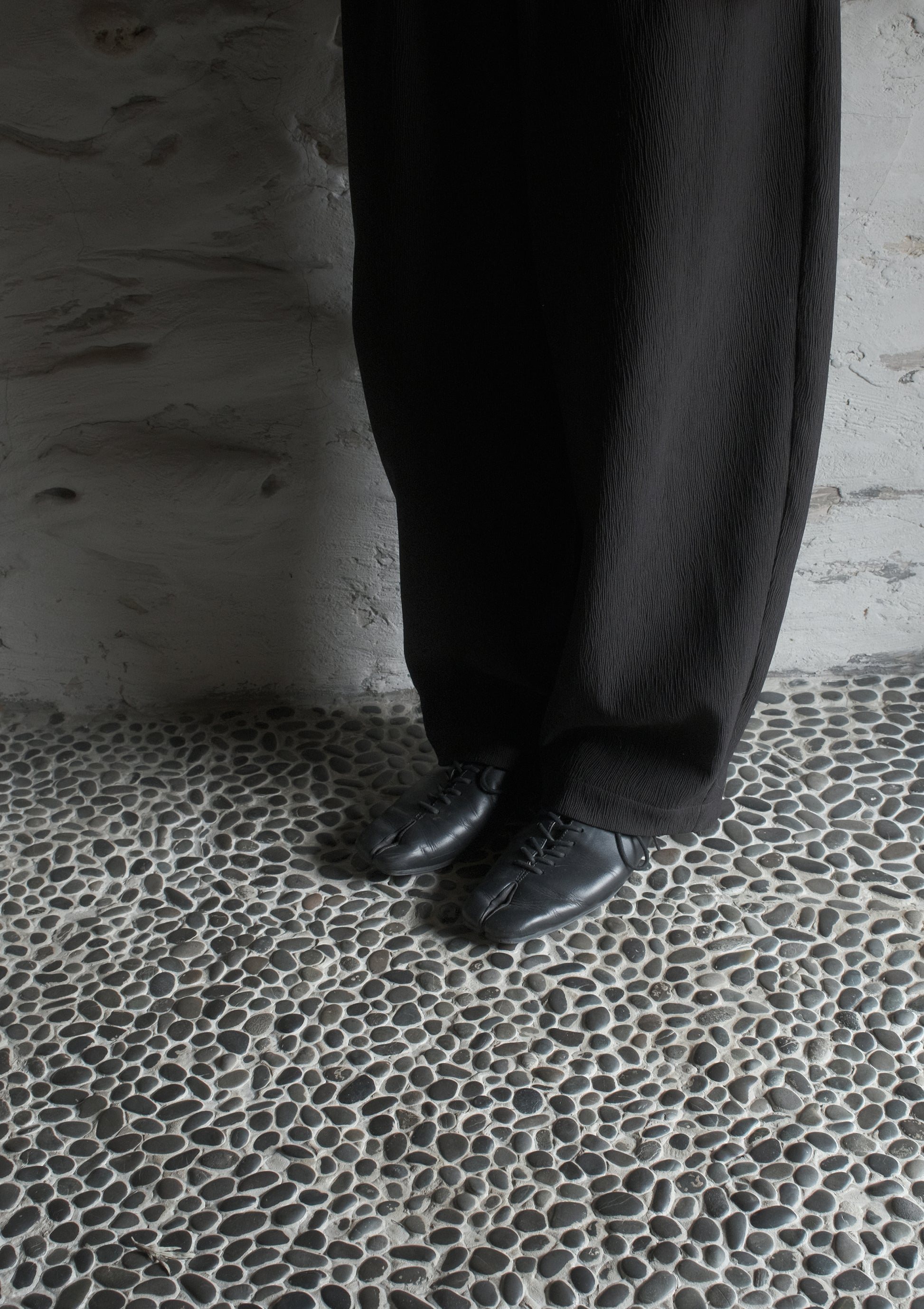 RONIN features a long, low silhouette that creates a distinctive and characterful mood. These shoes are designed to be worn with the heel folded. Toe room is 15mm, and the overall silhouette is long and narrow.