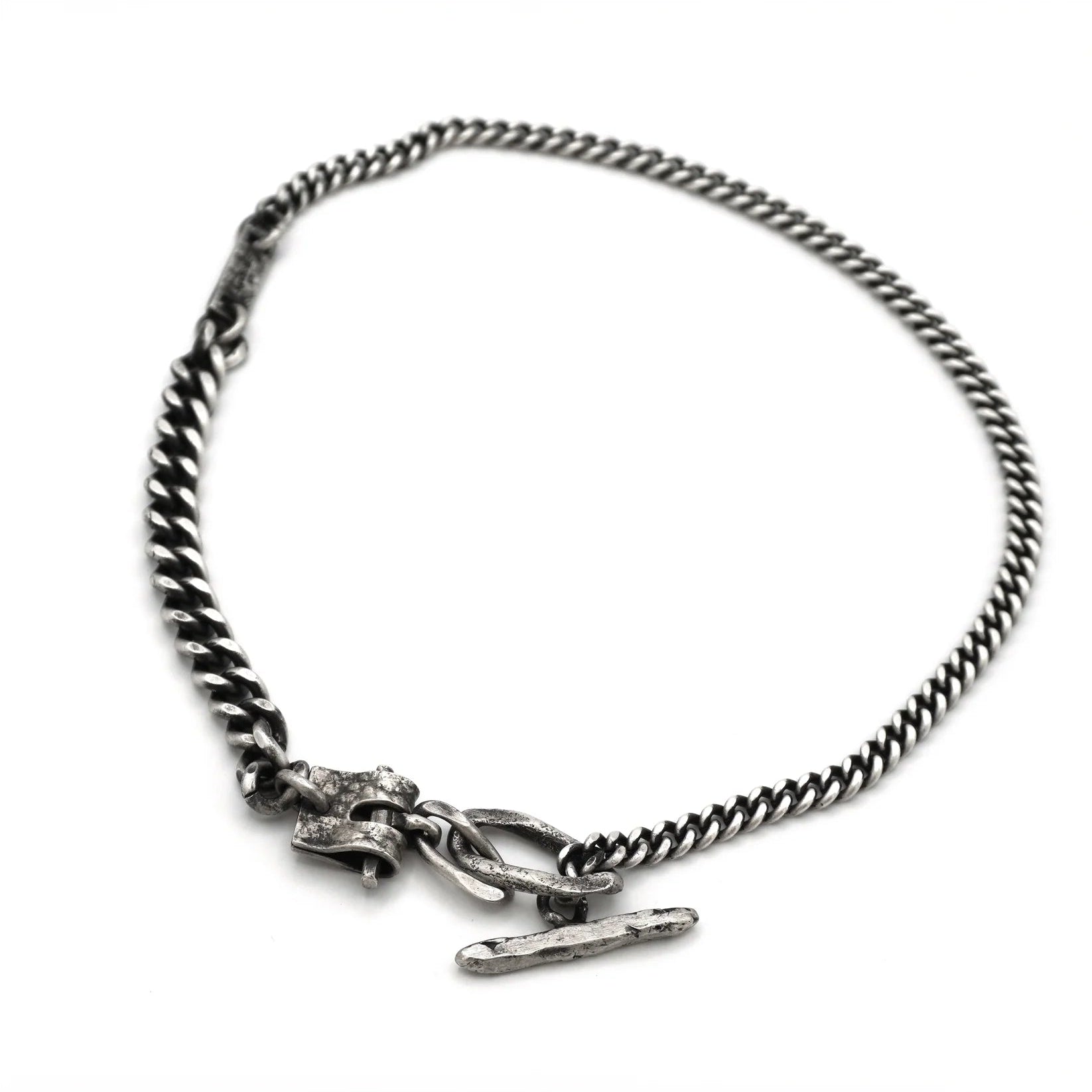 Silver leather buckle chain necklace