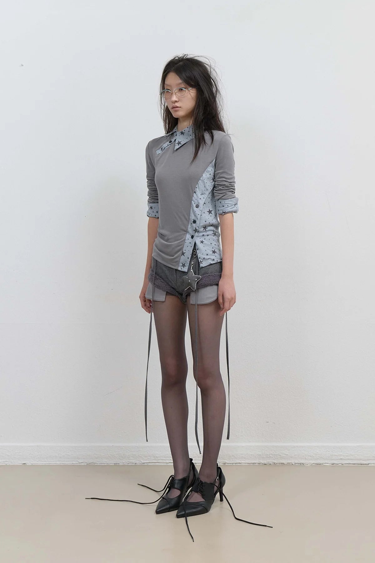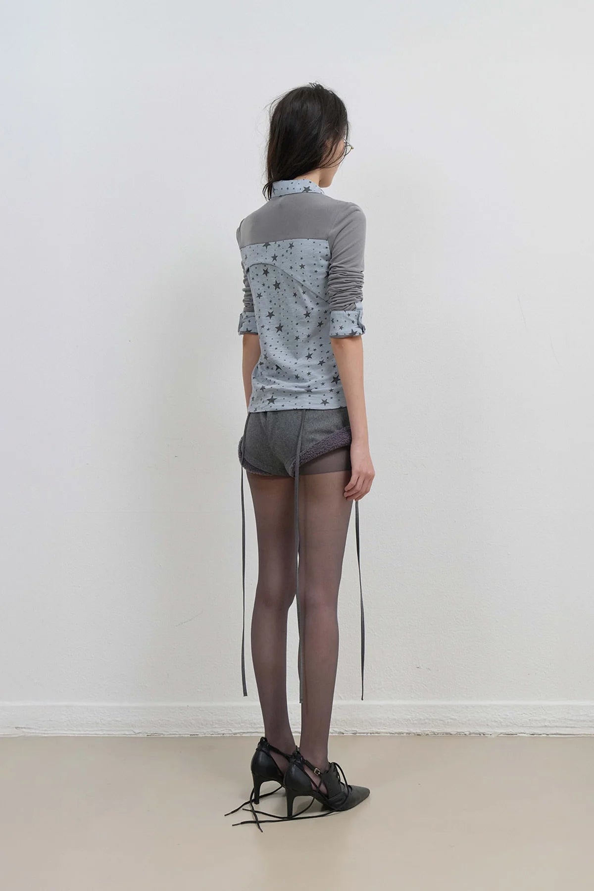 | Collar, cuffs, and side panels in star-patterned fabric