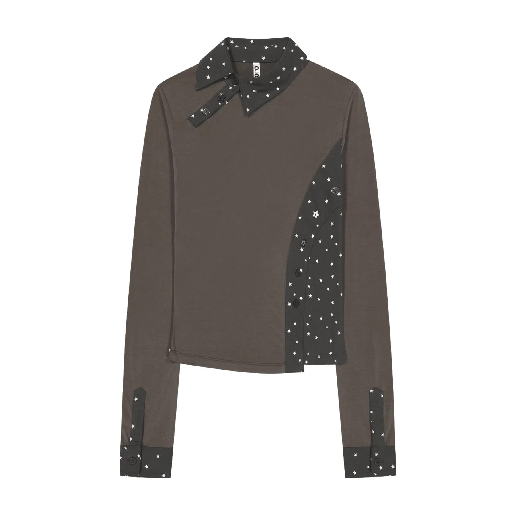 STARCUT JERSEY COLLAR TEE - STONE BROWN