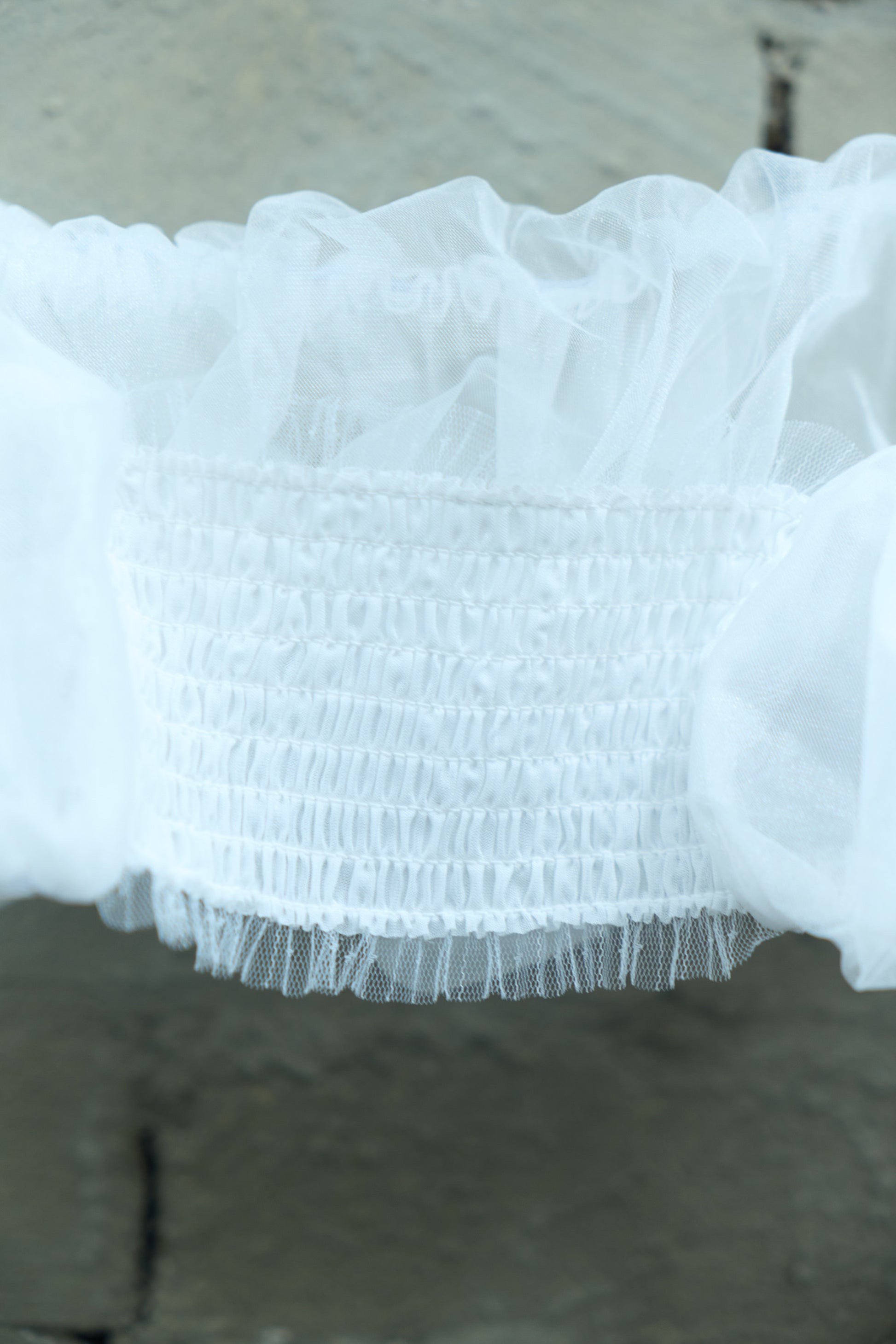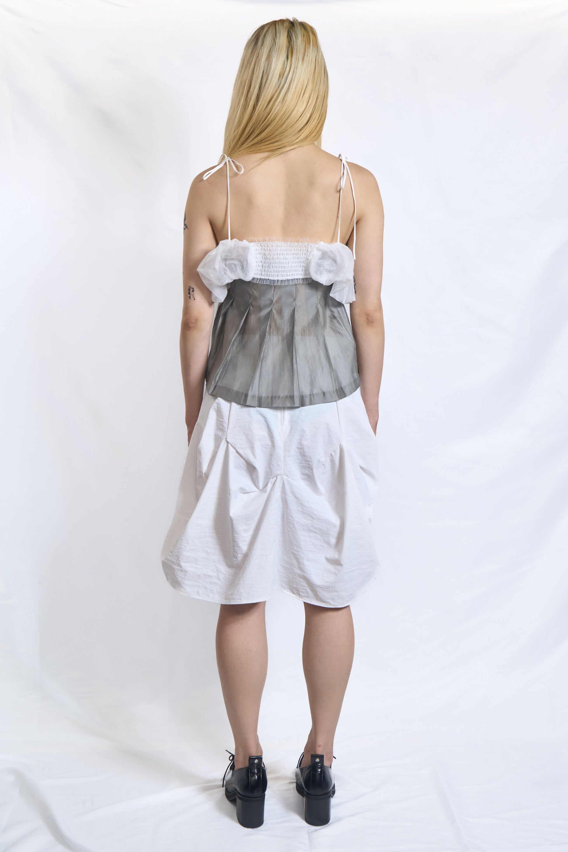 A sheer knit cropped tank with a delicate texture and open back ribbon ties. Softly fitted with a lightweight feel, designed for layering or bold solo styling.